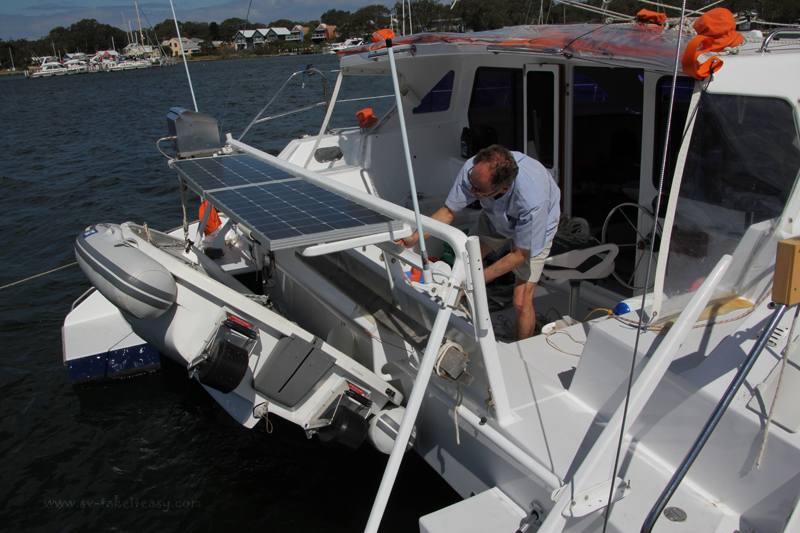 Hi Sue! Yes, it’s much kinder to the hulls and Wade has finished fiddling with the davits to get it hanging just right! We had another play this weekend…