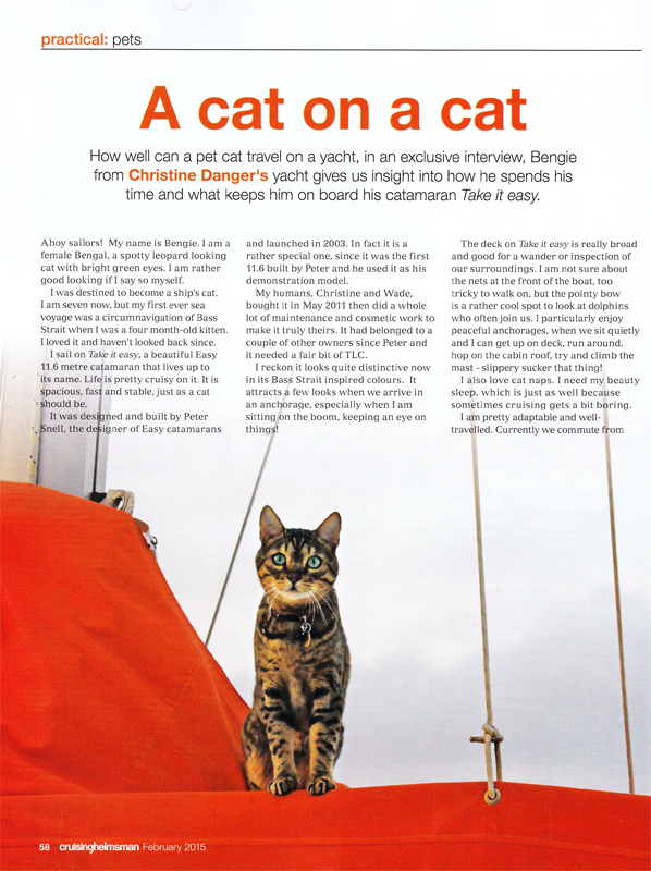 Feb CH Cat on a cat Published 02/02/2015 at 598 × 800 in Big month for Take It Easy in Cruising Helmsman ← Previous