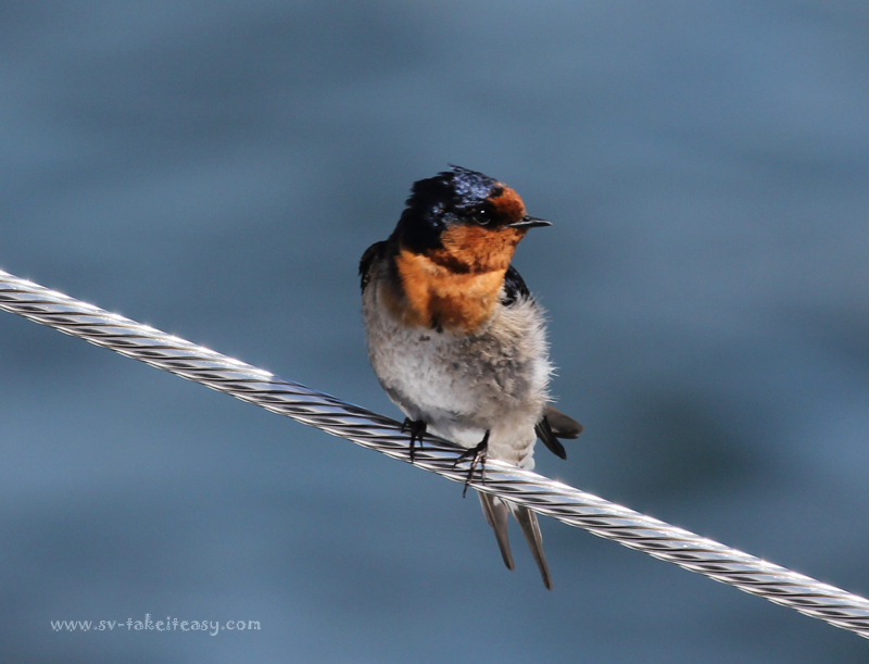 Welcome Swallow7 Published 22/10/2014 at 800 × 611 in Bird Photo Challenge #15: Welcome Swallow ← Previous Next → Welcome Swallow on our rigging