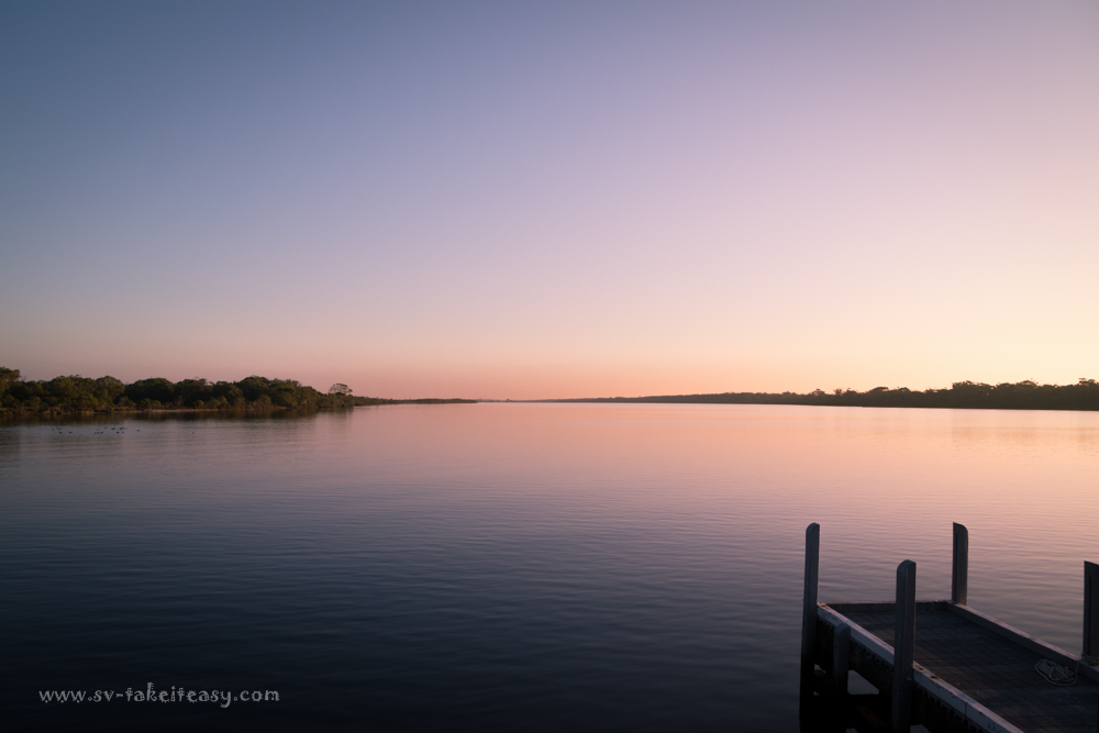 It did not take long for people to realise we were back.  It was nice catching up with a few locals and the weather was so lovely that rather than rush for the car shuffle back to Melbourne on Saturday, we decided to motor to Rotamah Island for the rest of the weekend.  No wind to sail, but plenty of sunshine to relax and enjoy our surroundings, and a dreamy sunset over a peaceful lake to welcome us back.