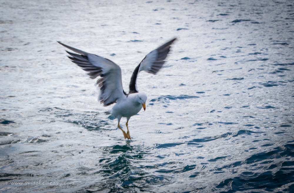 The Pacific Gull (Larus pacificus) is a striking seabird which often comes to visit us when we are anchored, waiting for tasty morsels we might throw at it.  This gives us a great opportunity for close up photos without too much effort!  So for our #19 Bird Photography Challenge, we bring you the largest of all Australian gulls, showing off with a bit of red lippy on the beak for the fashion shots!