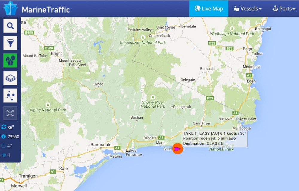 For those interested, you can follow the boat on http://www.marinetraffic.com   You have to set up an account (which is free and just means providing your email). You can then set up your ‘fleet’ so you only track the boats you want and enter our vessel’s name in upper case – you guessed it: TAKE IT EASY!  After that, the guys can’t hide; we know where they are, whether they are moving, at what speed and in which direction!