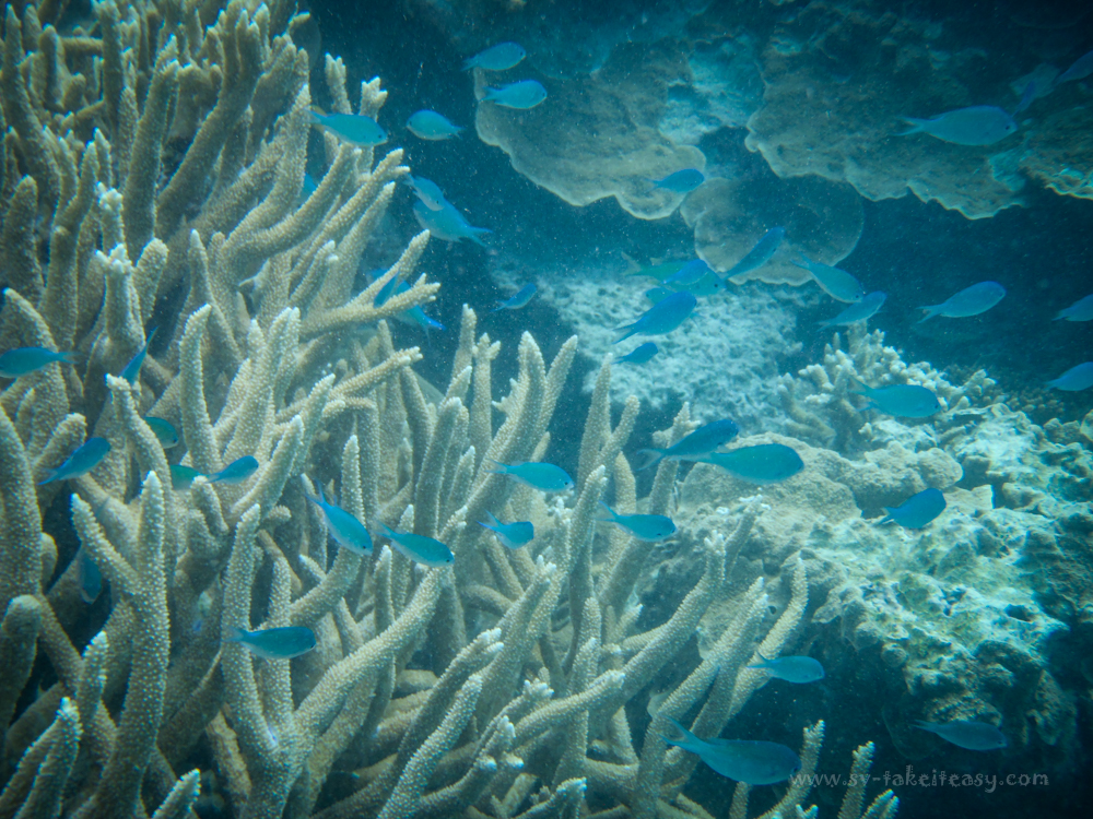 It is always a wonderful experience to snorkel effortlessly and be surrounded by an abundance of attractive sea life.  But in this instance, we are introducing Véro and Didier to it, who have never snorkelled, never been in tropical waters, never seen corals and tropical fish other than in aquariums, and this really intensifies the experience.  We all look at all these underwater treasures with child like eyes, but for them especially, it is one hell of a discovery.