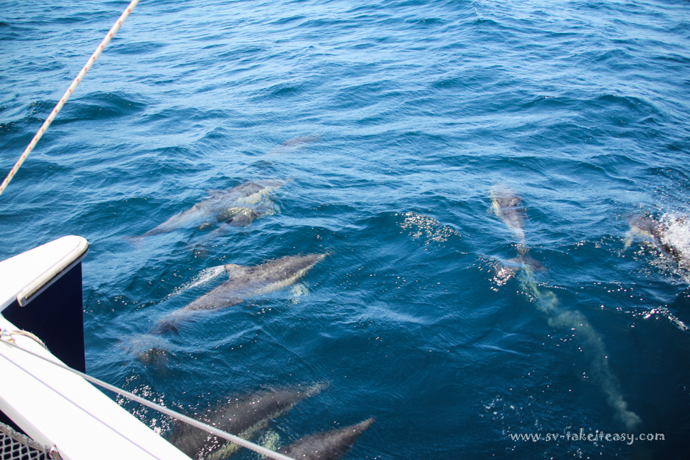 We have also noticed that dolphins seem to like it best and stay with the boat the longest when we are sailing at a steady pace. They are really fast swimmers, clocking over 30km/h!  If we are too slow, they appear briefly, then suddenly they are gone.