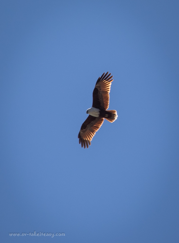 The Brahminy Kite is a familiar sight in the skies of the Indian subcontinent, South East Asia, and in Northern Australia along the coastline from WA to Northern NSW.  It is often seen along mangrove flats and estuaries.