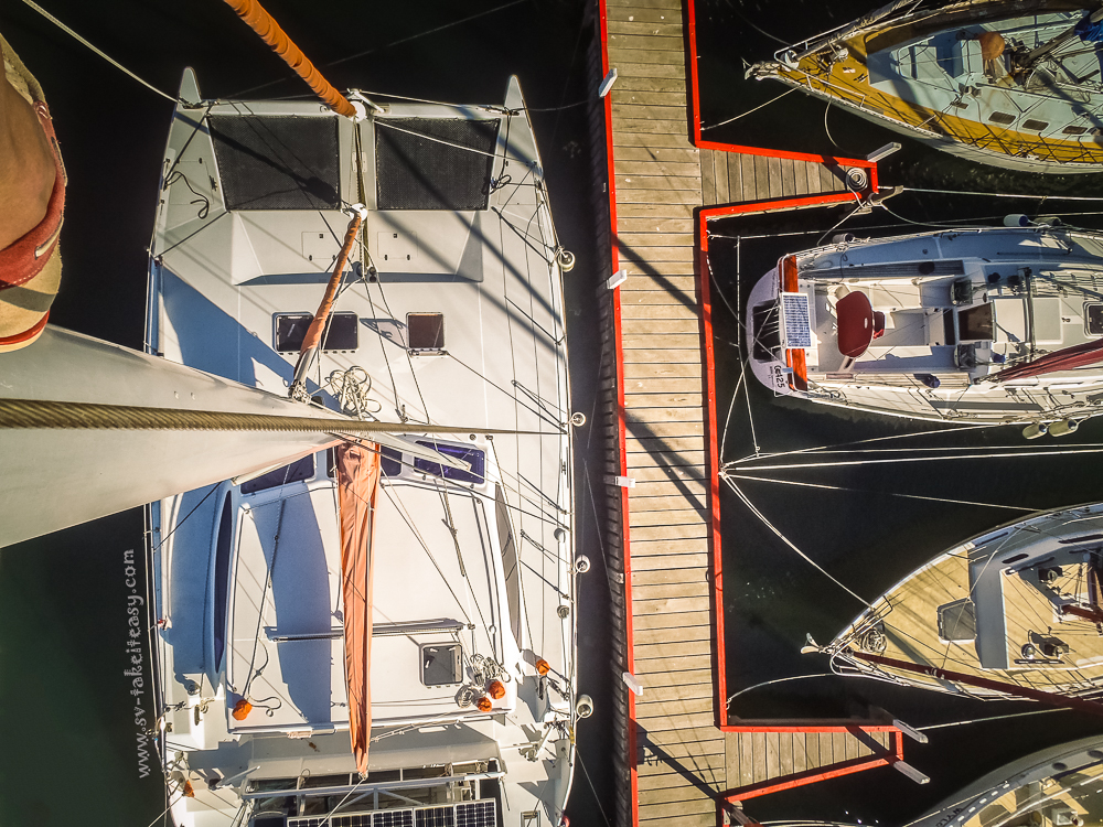 You probably have noticed that we have not posted about sailing for a while… It is winter, very chilly on the water, and even on sunny weekends when we can be tempted to venture on board our catamaran, only a few short hours are at a bearable temperature! Our little chicken bones don’t like the cold and thus not much sailing is happening. But we are working on our long boat maintenance to-do list and making progress on the cat grooming front.