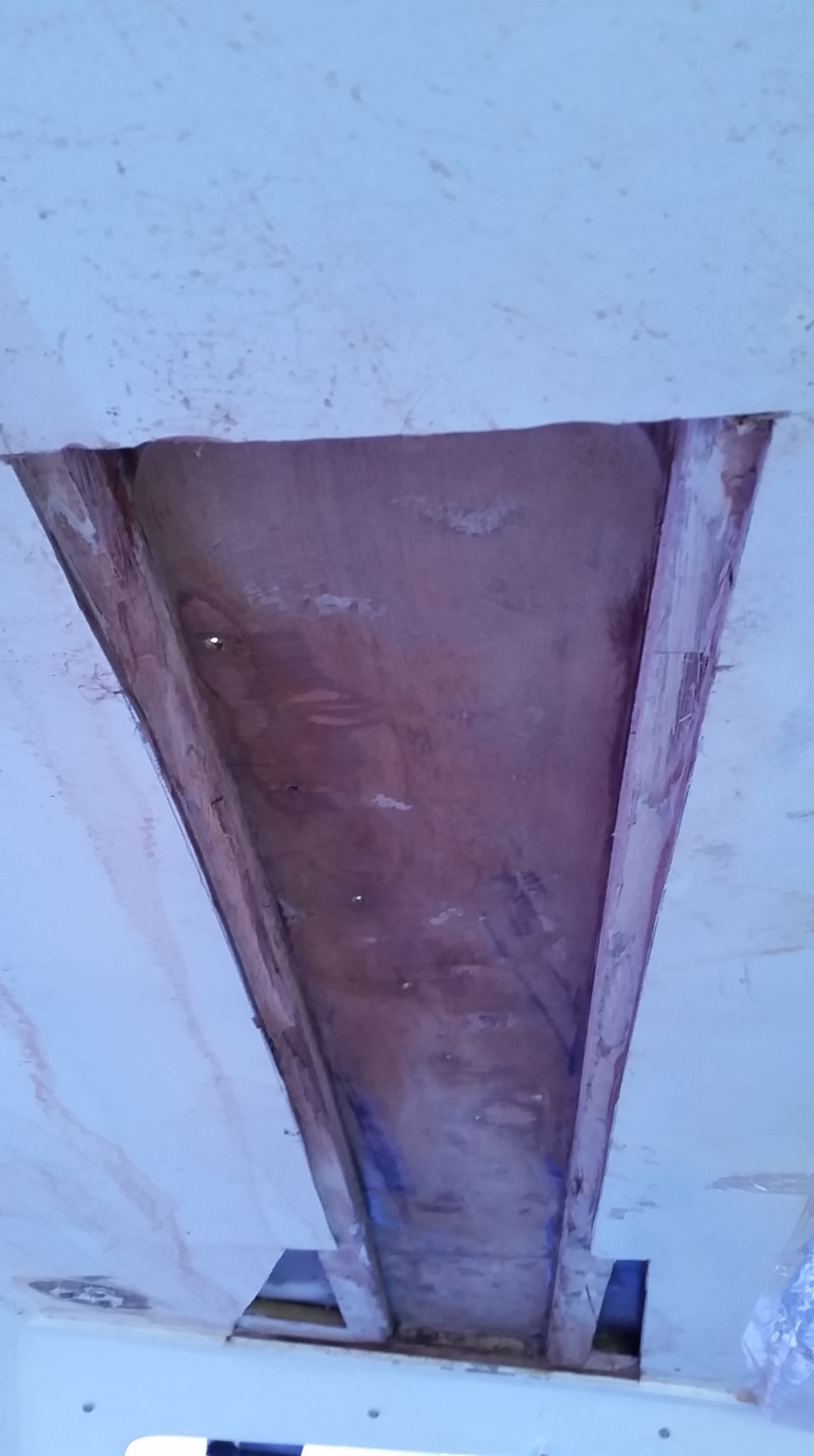20160927_171525 Published 04/10/2016 at 1824 × 3264 in Leaky Sail Track Saga ← Previous Next → Big hole cut out following the sail track and where the water accumulated!