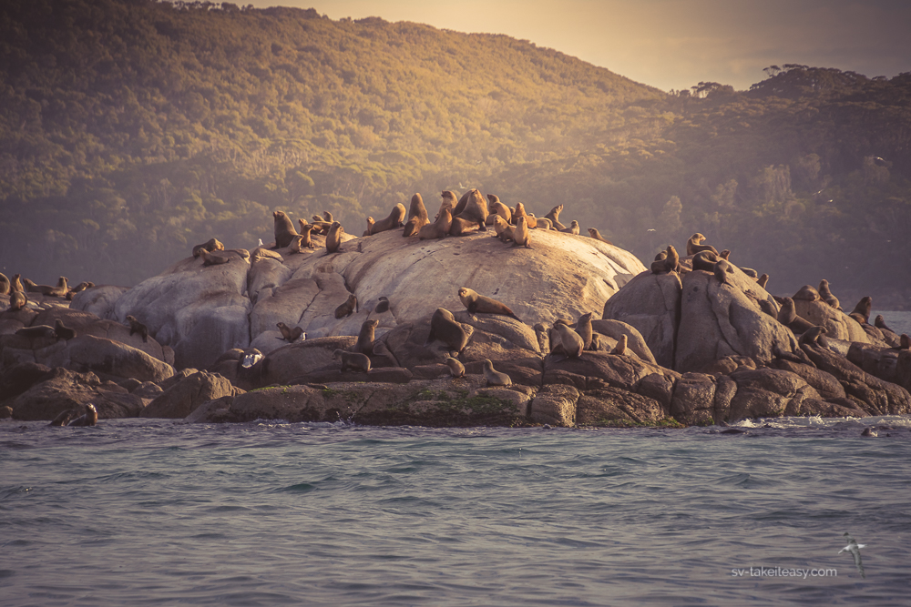 The only scary thing about the Skerries is the Australian Fur Seal colony. It can be a bit on the nose when you are sitting downwind of them and they are a noisy lot: a mix of cattle bellowing and dogs barking. A small huddle came to visit us while we were still at anchor having breakfast. They were a bit nervous the night we arrived, but were a little braver in the morning. I had to hide to get the photo so as not to spook them. Aren’t they funny looking with their little ears and inquisitive faces!