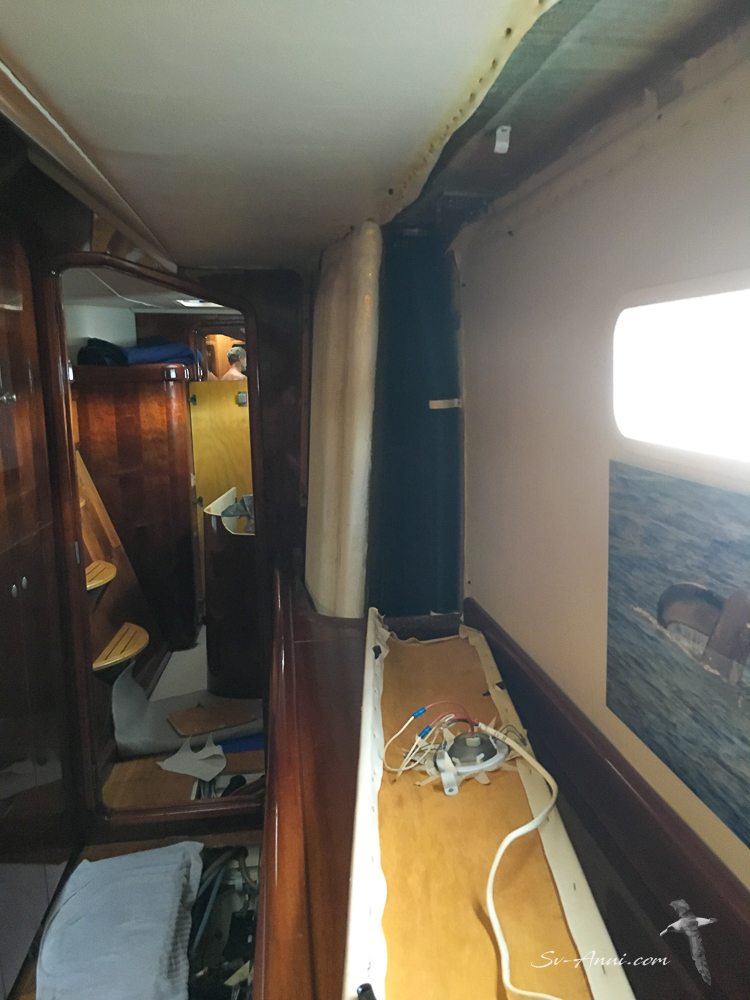 The exercise gave us a better understanding of how the linings and panels hang together and what lies behind them. We are in such awe of the construction of this boat. Everything looks beautiful, but can be removed with care.