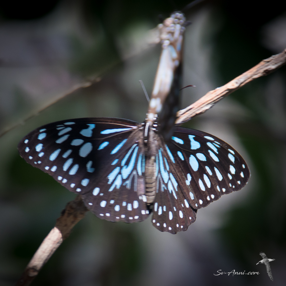 The butterflies were everywhere during our walks. The blue ones are Blue Tiger Butterflies, the brown one is a Common Crow Butterfly.