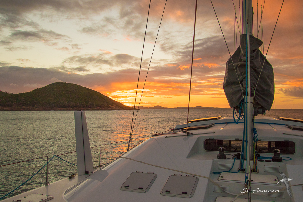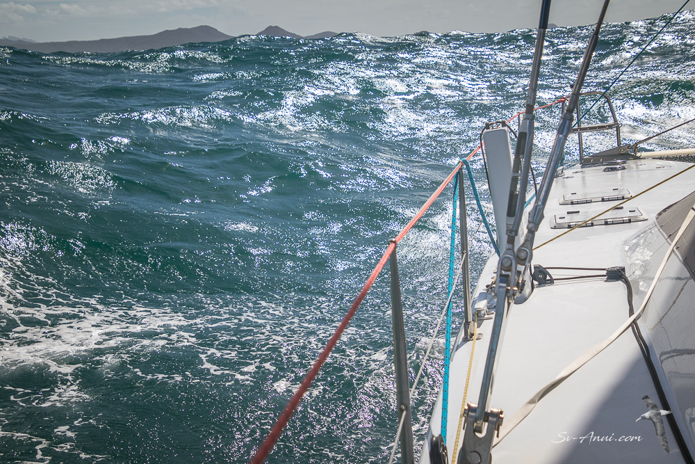 After seven hours of rough and tumble, we pulled in at Pearl Bay. Only 50 miles covered but that was enough! The anchorage was calm and the sunset to die for. The night however was uncomfortable as the wind shifted and left us rolling in the swell!