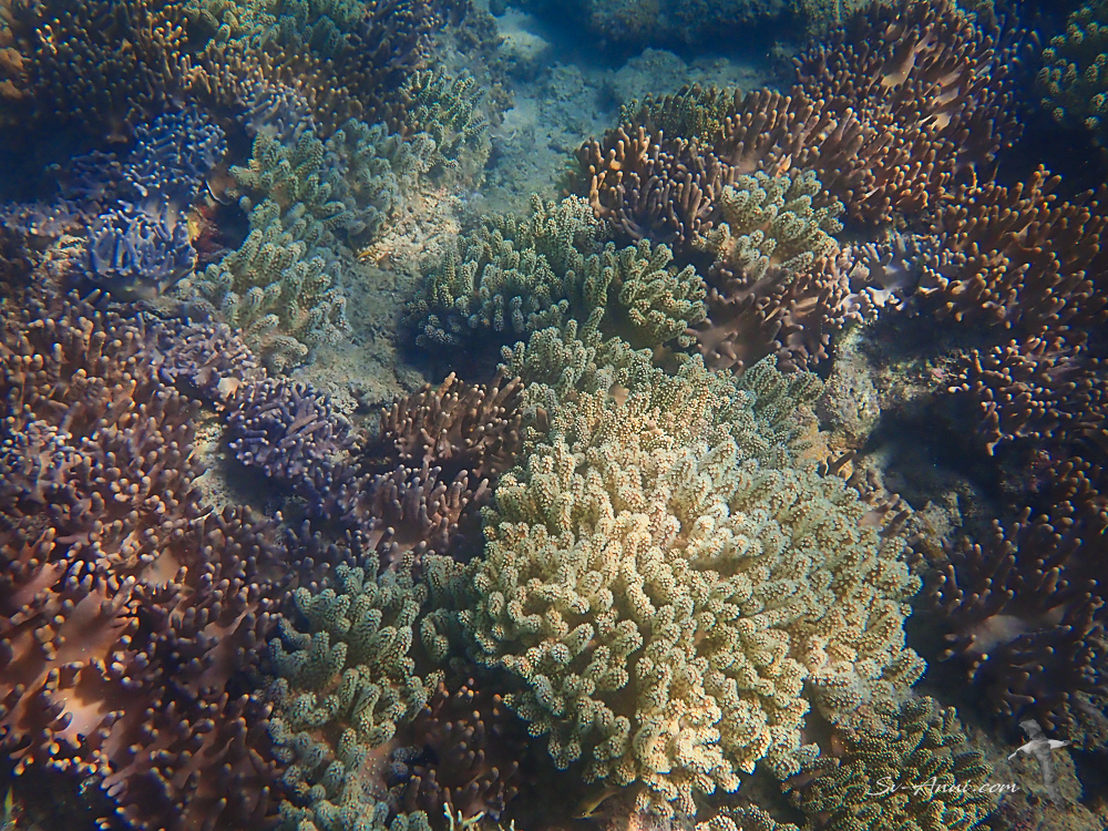 The reef flats at low tide are just under the surface, sometimes not enough to swim over, so you follow the deep channels which meander like a maze. Interesting to find your way back at times!