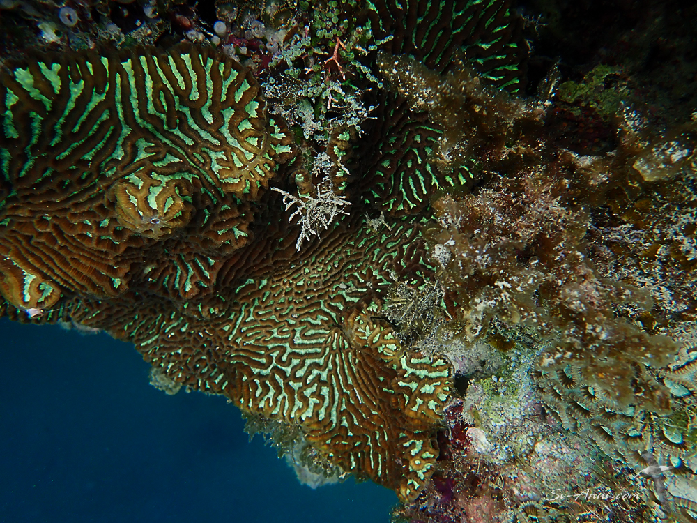 We stayed there for three nights and used the dinghy to get to the snorkeling sites of the NW Corner and Homestead Bay. When you first get in the water there, you think: lots of rubble and brown algae. But both sites were interesting again! The NW Corner was a little creepy, with deep dark canyons possibly hiding big monsters, but in fact it was full of tiny little juvenile fish, gorgeous soft corals and lots of interesting tubes-like sponges.