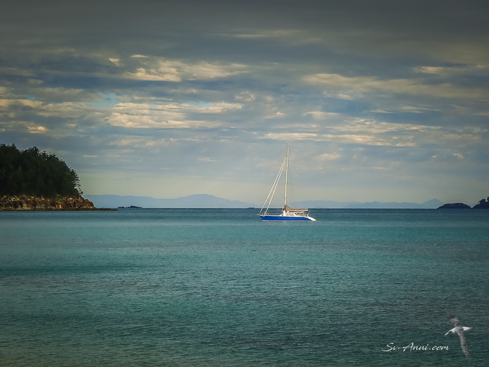 Isn’t it amazing, everybody flocks to the northern part of the Whitsundays, vying for a bit of swing room or competing for a mooring, and we are here enjoying magnificent views, a protected anchorage with a lovely beach all by ourselves! There is another anchorage protected from the SE which we had been to last year, but this is superior, with easy access to the beach. Unfortunately the island has no walking track, so unless you are keen on bush bashing, swimming is a better alternative!