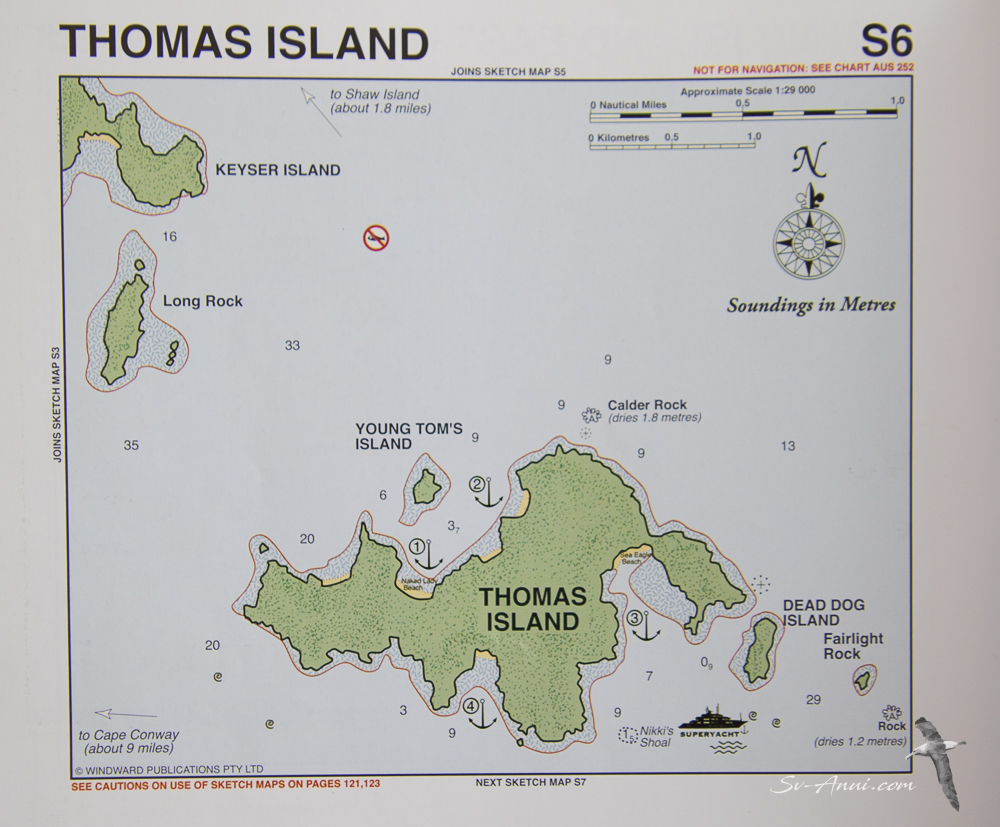 Described as remote, Thomas Island does not feel that way, probably because you are surrounded by imposing islands nearby which are part of the Lindeman’s Group and thus you don’t feel isolated.