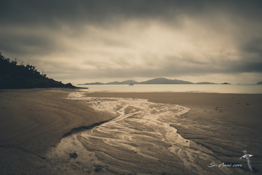 As we arrived at low tide, we were able to get relatively close in, but the shore shoals a long way out and when we went ashore for a wander, we looked like we were anchored miles away! With threatening skies, a loud cloud base and the sand flats extending for miles, it made for quite moody shots.