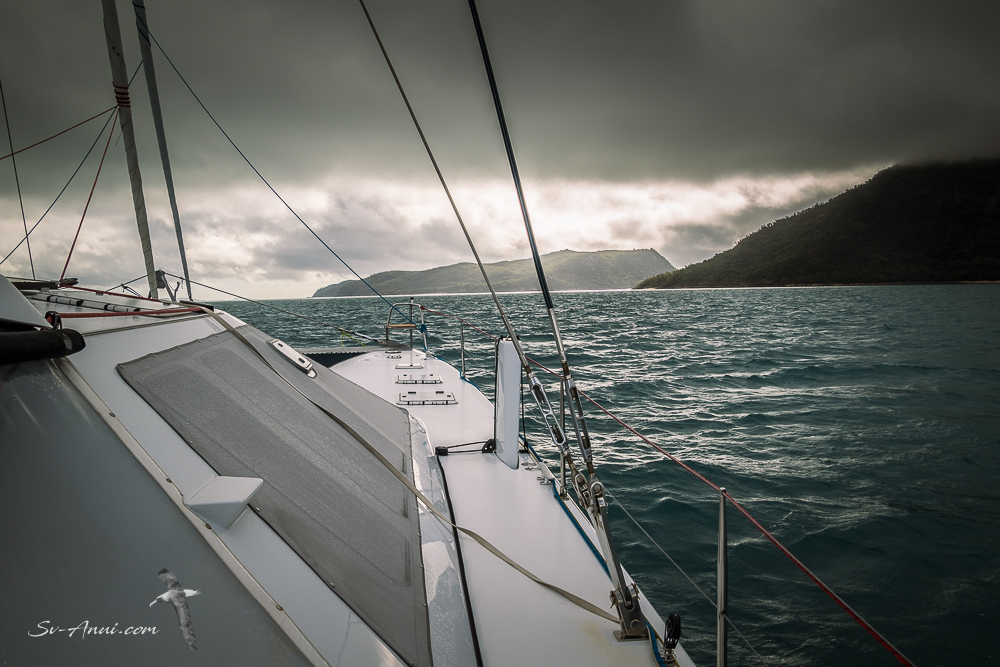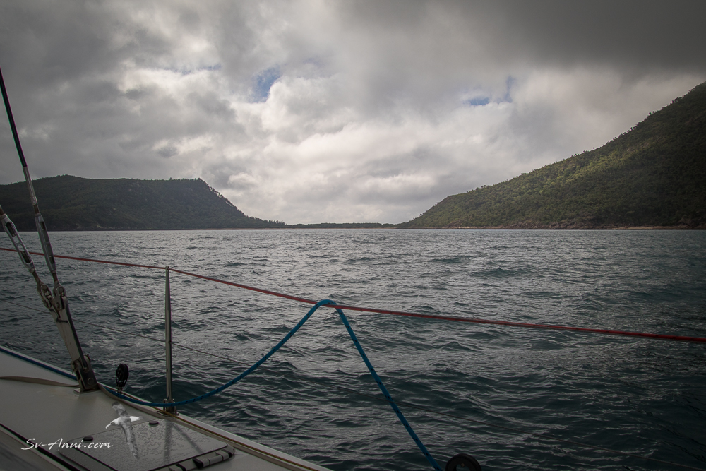 We continue our Southern Whitsundays Series by finally escaping from Thomas Island and heading to Shaw Island, a short distance away. We could have sailed there but we motored to recharge our batteries as after several days of overcast weather, our solar panels were struggling and Wade was fretting!  Days of gale force southeast wind made the sea lumpy, with a nasty beam chop! But we did not have far to go.