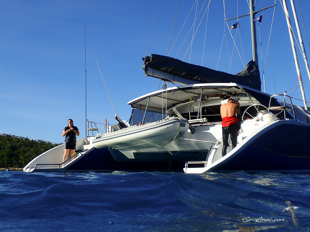 There were a few firsts for Grant and Deb: swimming with Batfish, spotting a Manta Ray, seeing a real Giant Clam rather than just the smaller ones, cruising at 10 knots without effort. It was not crowded, the breeze was steady at 20 knots most of the time, but when not sailing, we were sheltered and comfortable.