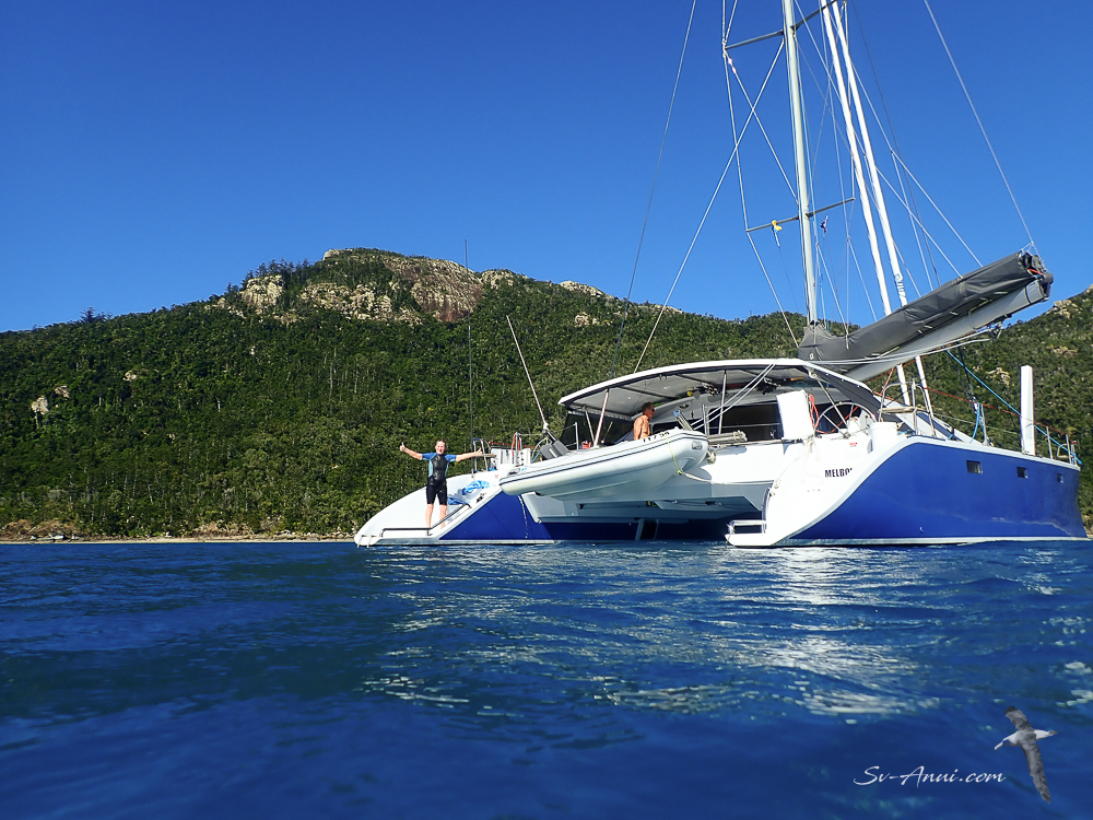 We thought we would get away north as soon as our friend Sue arrived, but the boat gremlins got in the way: the pressure arm on the anchor winch snapped and we have ordered a replacement. And we are also waiting for engine oil and filters for the next round of engine servicing. But never mind, we can enjoy the Whitsundays for a few more days and maybe even sneak a trip up to the Reef. The anchor winch still works, we just have to be careful.