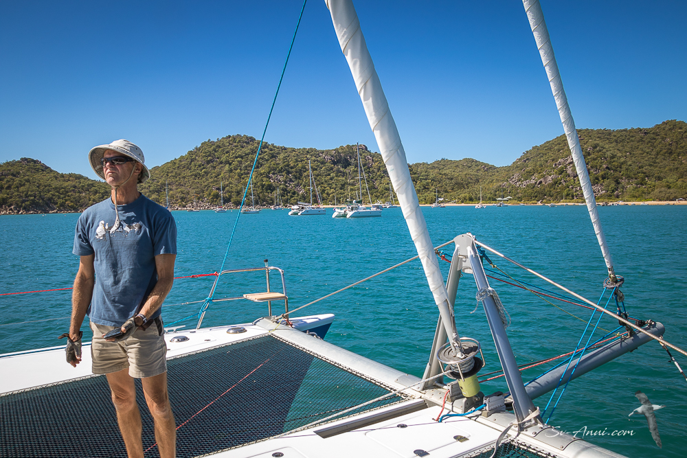 We had been starved of exercise for the last couple of weeks so we took the opportunity to explore the many walking tracks on the island. It is scenic, with granite outcrops, rainforest, interesting vegetation such as hoop pines, kapok trees, even bougainvillea, and the tracks lead through bushland to beautiful palm fringed aqua bays and stunning lookouts. We followed a historical track to the old World War II fort and gun emplacement, did a long loop walk that linked the southern bays and afforded stunning views towards the mainland and the nearby islands, and we took Anui to a couple of quieter coves outside of the favoured Horseshoe Bay for a less crowded interlude and a snorkel. Here is a slide show of some of the lovely sights we enjoyed. Just swipe to move to the next image.