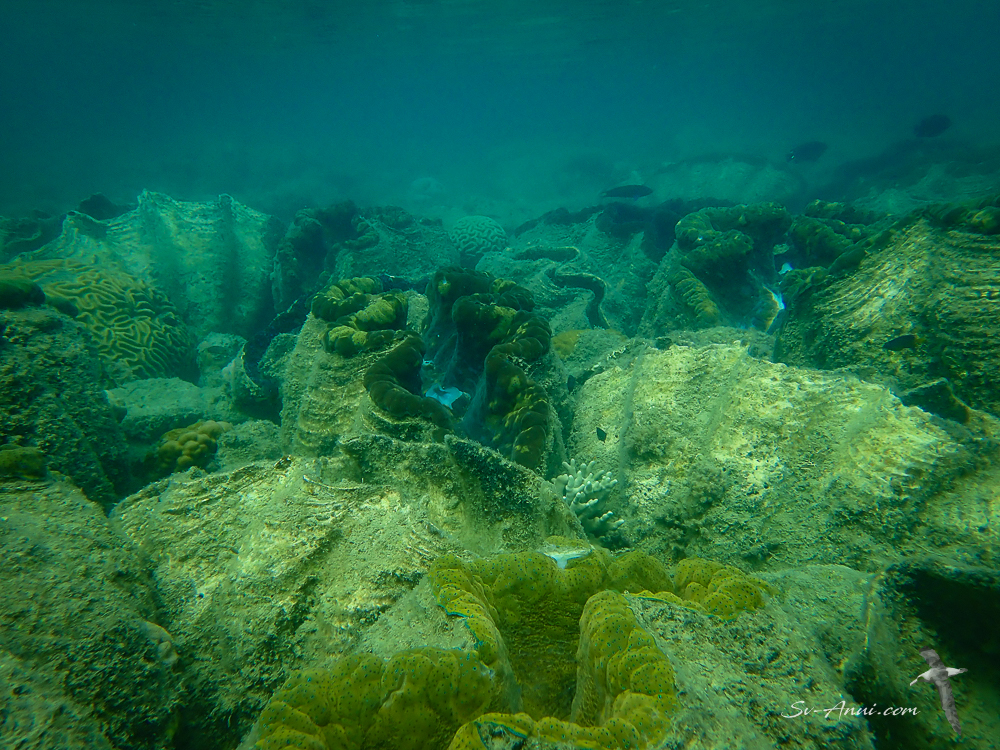 • Thanks guys. You should put this spot on your destination list – there are public moorings not far from there too. You can see the clams with your bathyscope if you don’t want to snorkel.