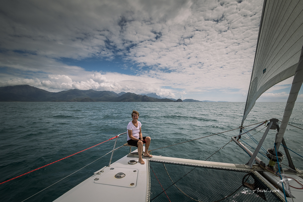 This mountainous island is separated from the mainland by the narrow Hinchinbrook channel, about 26 miles long. As well as the main channel there are numerous creeks interlaced through mangrove forest. Plenty of protected anchorages there, but being a haven for sandflies and mosquitoes, we opted to stay on the ocean side of the island.