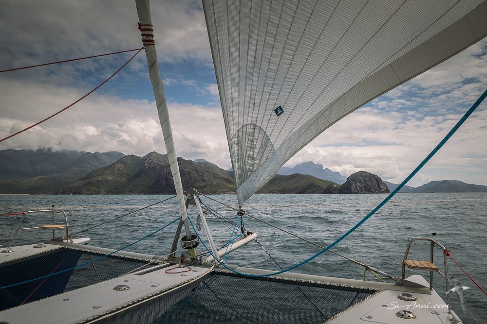 We stayed at Zoe Bay for one night. Although we were there in very light conditions, the anchorage is probably never free from swell. We sat in this beautiful spot, beam to the swell, pleased to have east-west oriented beds so we could not roll out in the middle of the night! We did not have much sleep but the scenery was worth the discomfort.