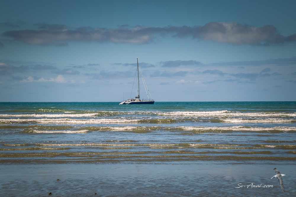 The day we arrived, we walked the length of the very long beach to check out the lagoon at the northern end. We were there at dead low tide. We wanted to see if there was enough room for Anui to get in at high tide, knowing that at low tide you are locked in. We could fit with enough water depth to float as long as we anchored fore and aft so as not to swing into sandbanks, but what about the sandflies and the crocs? Mmm… Pass!