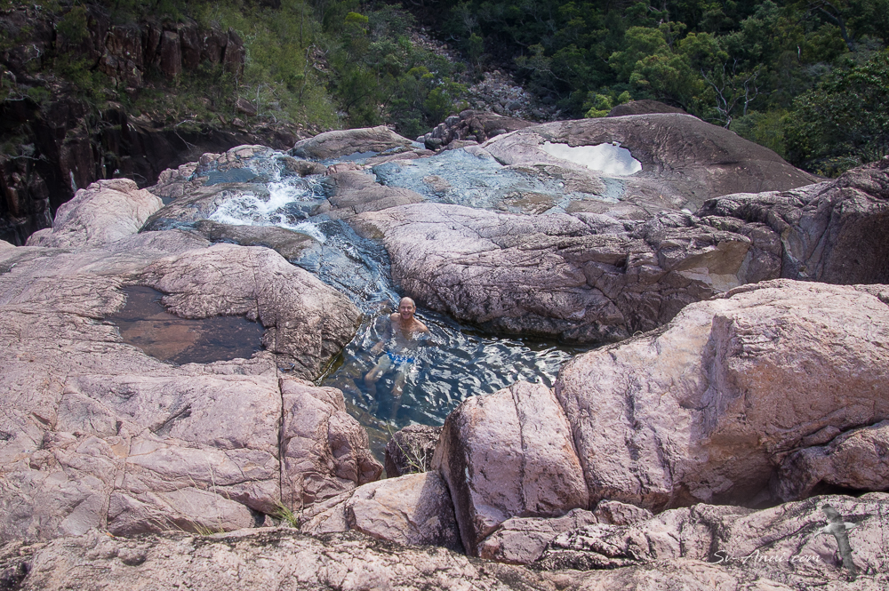 Zoe Bay would have to be the most spectacular anchorage we have ever been to, although one of the least comfortable! A wide bay covered in pristine white sand and surrounded by tropical rainforest, this is a most magnificent site. You look around and all you can say is wow! Towering mountains up to 1140m high, a long sandy beach, a lagoon at the northern end, a creek at the southern end, a waterfall and fresh water swimming holes up high out of the crocodiles reach… It is stunning.