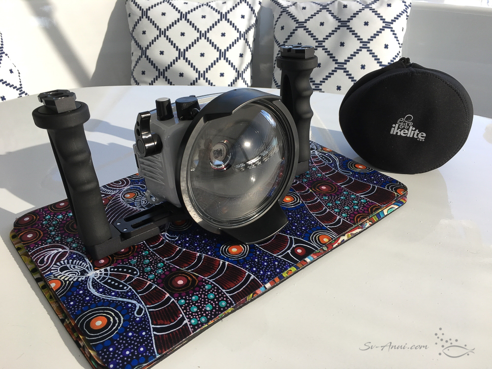 And apart from boat gear, the next most important thing on board Anui is photographic equipment. I was lucky to be spoilt for my birthday. I will just say: Digital Diver! But just to be sure you get the picture: Wade bought me a new Ikelite underwater housing, dome lens and tray for my Olympus.