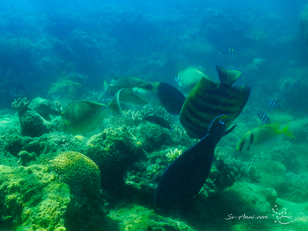 But while the conditions were still calm, we decided to go for a snorkel from the back of the boat and I nearly did not take my camera… close to the mainland, nothing is going to compare to where we had just been! Well, what a surprise! No, the reef was not in good condition and the visibility was not great… lots of algae, but…