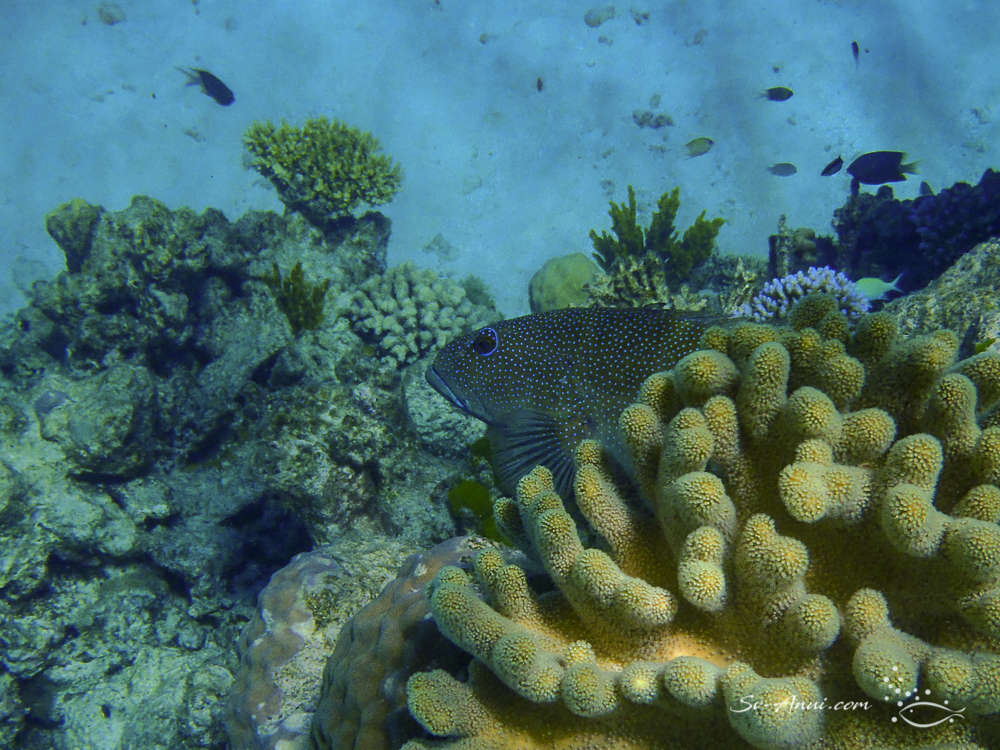 We observe the usual assortment of fish and coral but this time there are a few bigger fish species as you can see from the slide show below.