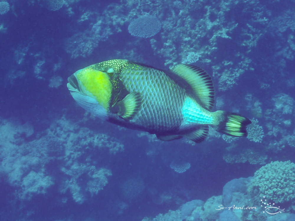 Further away from the edge, in deep water you see pelagic species: the very odd looking Humptop Unicornfish, Bluefin Trevallies, Barracudas.