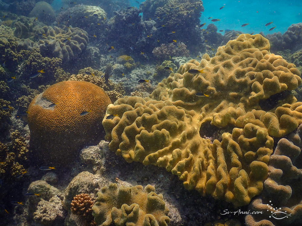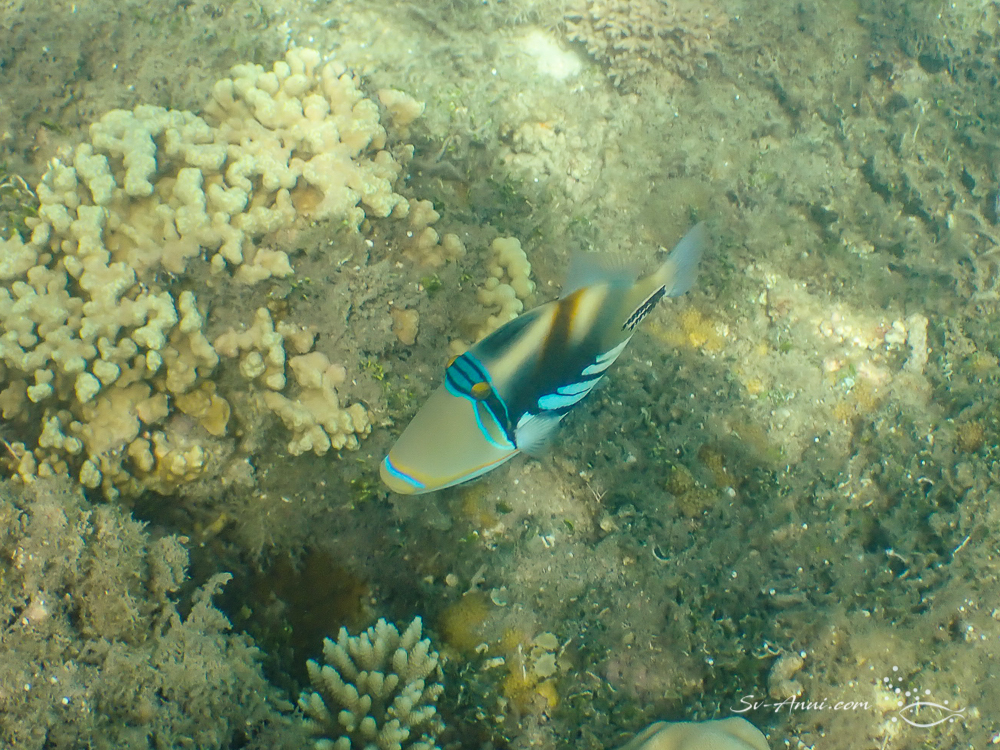 Even though the wind was blowing at over 16 knots, the guys were keen to get in the water for a snorkel the next morning. So we hopped into the dinghy and anchored in a sand patch near the shallow reef. The water was not as clear as we would have liked, but it was definitely better that on the fringing reefs and Murray and Maree loved it, staying in the longest of all of us! Here are just a few underwater images: