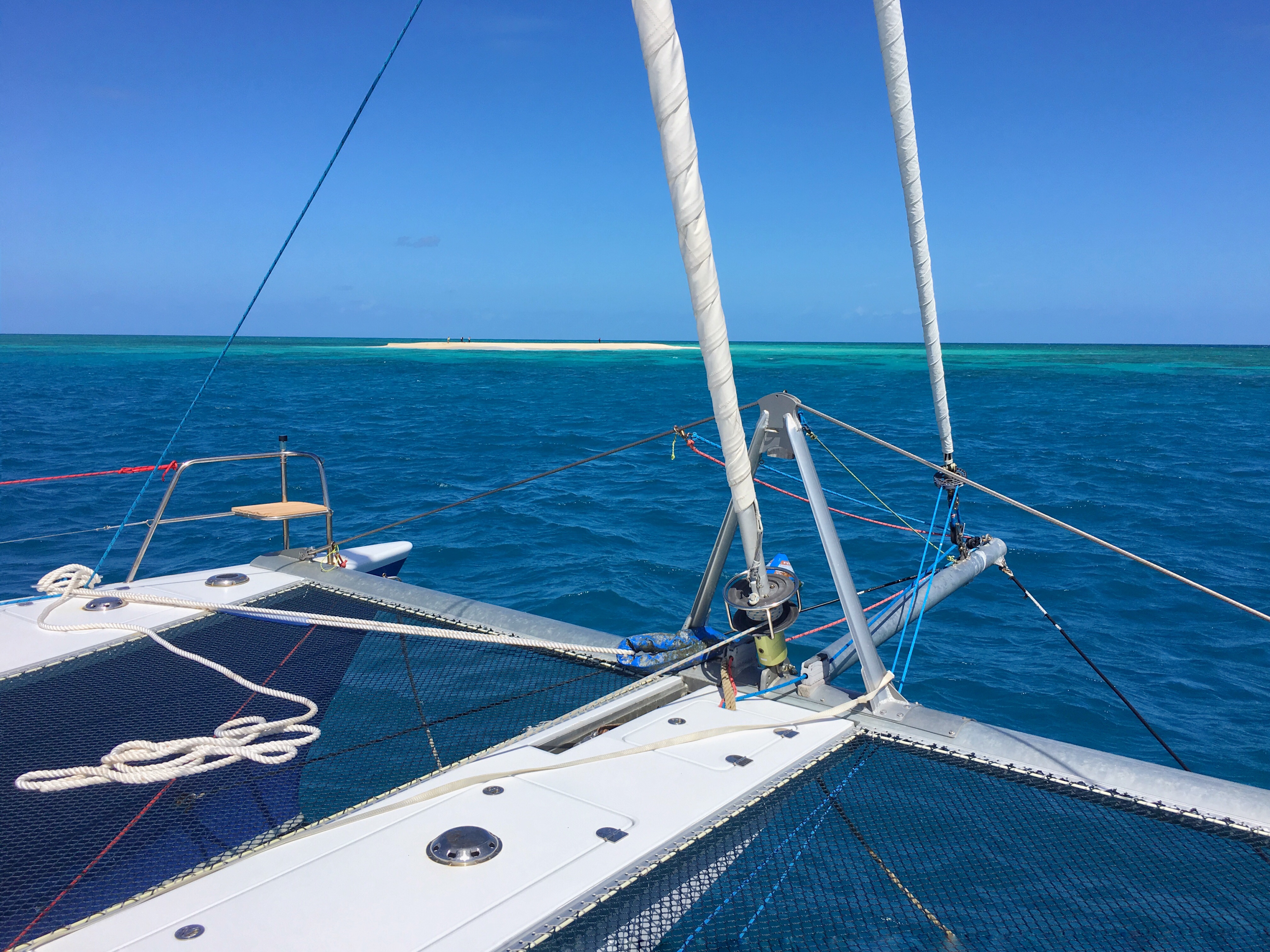 There is nothing quite like arriving at a coral cay – graduations of colour, bright little patch of sand in in the middle of the ocean, free public mooring to tie to, then a wet and wild ride in the dinghy to land on the cay and play castaway!