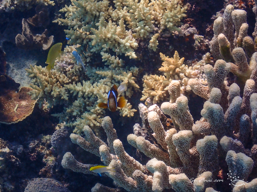 With two more days of moderate northerlies and a SE change half way through the third day, we made another plan: we stopped and snorkeled on the SE side of Heron Reef – first time for us and definitely worth a stop.
