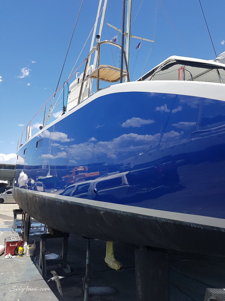 Another important aspect is to accept that you will often be out of the water for longer than hoped. This is because if unexpected things are discovered, you have to get them properly fixed. Our approach is to attend to whatever crops up, because Anui is our home and we intend to cruise on her for many years to come. As a yachty friend Pete on Selah puts it: it’s a contract. We look after our beautiful ship and she will look after us.