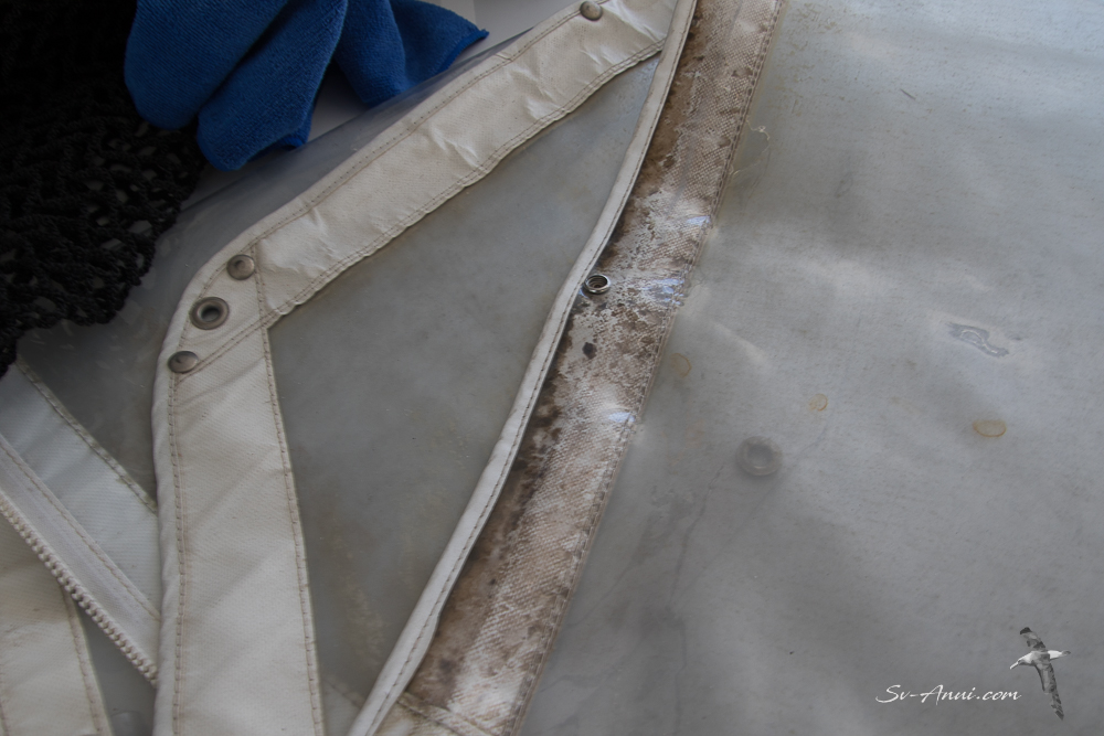 Bevan Dawson from Marine Canvas & Trimming has made us some new clears for the cockpit to replace the rotten ones. The difference is amazing compared to our tatty, cloudy, mouldy old ones! He has also repaired a couple of zips for the lounge and cockpit cushions. All this was done and dusted in two days. Very pleased!