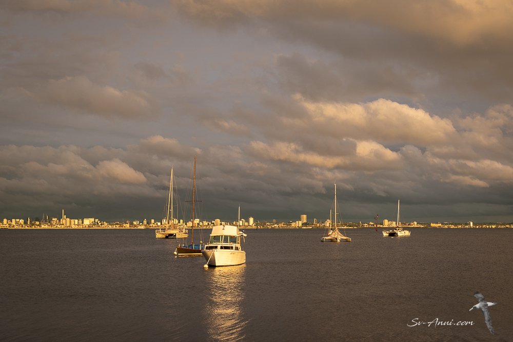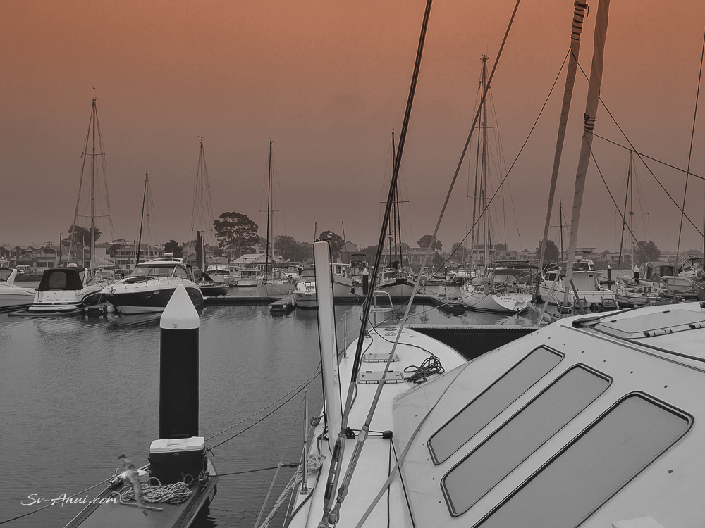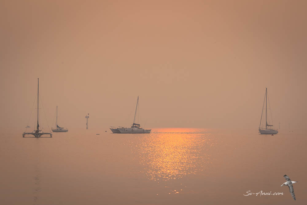 With the smoke from the fires choking our cities, we breathe toxic air that affects our lungs and eyes and gives us headaches at times. But there are also sights from our cockpit that never fail to amaze us even if they are born from catastrophe: blood red sun in the hazy sky early in the morning, ghosting yachts in eerie Hobsons Bay, copper sunsets and tormented clouds reflected in the distant buildings… So for now, let us have a look at some images that appeal to us and reflect the current moods of Williamstown. Some days are reasonably clear, others are smothered by a blanket of thick smoke. Slide left to see the slide show.