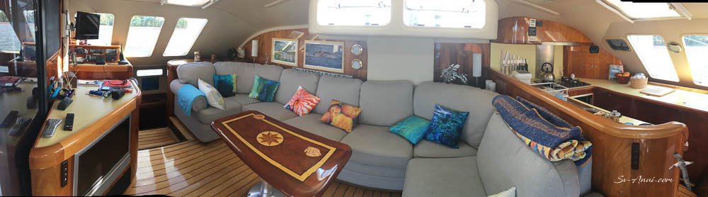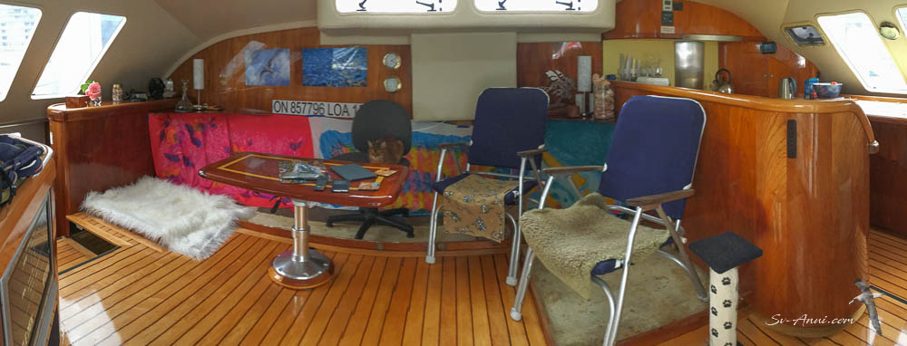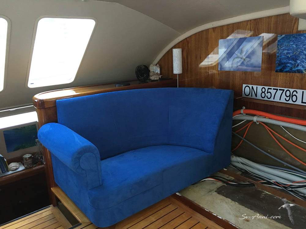 Our modular lounge came back last weekend: bright, soft, super comfy. Complete Reupholstery Services did a terrific job. They managed to do the work in three weeks, as well as pick up and deliver at the marina, which was an added challenge and first for them! Here are the photos of before-during-after the re-upholstery!