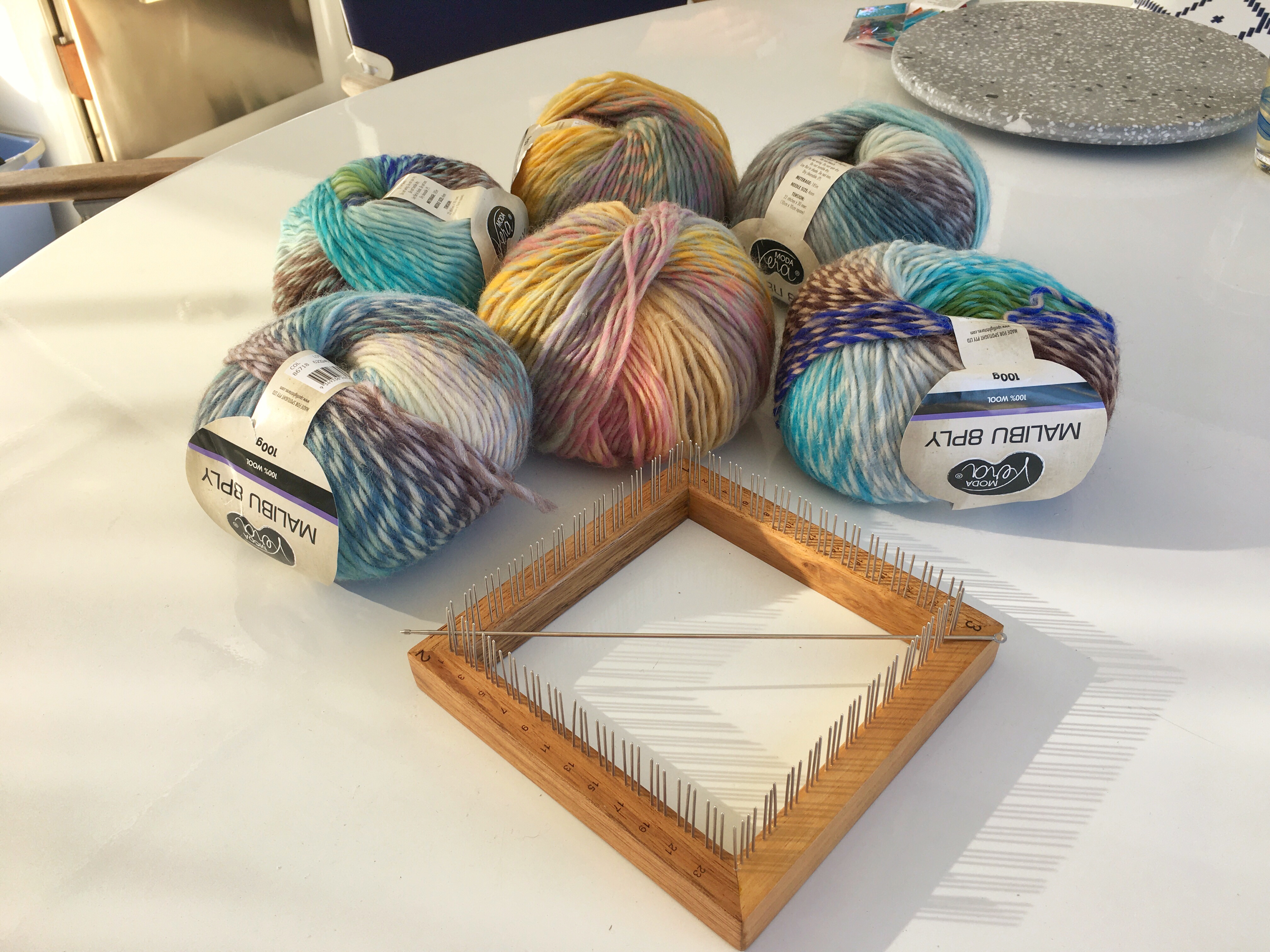 Our friends have a bit to answer for! Serene & Stephen in Healesville and Tam & Dee at Yarra’s Edge helped Chris reconnect with a life-long love of playing the piano. They made us realise we did not need to do without one on Anui… just get an electronic keyboard! Then there was a fantastic day with Greg & Ann at the Forgotten Trades Fair in Bendigo, one of the last public events that was held. The fair was a reminder that a craft project can be fun. We saw so many inspiring artisans! It might not be possible to bring a bulky lathe or floor loom on board, but a little pin loom is practical to make a throw, one square at a time. As an artist who follows our blog said: “Make art with whatever is at hand. It will be uplifting”. Janis, you are so right!
