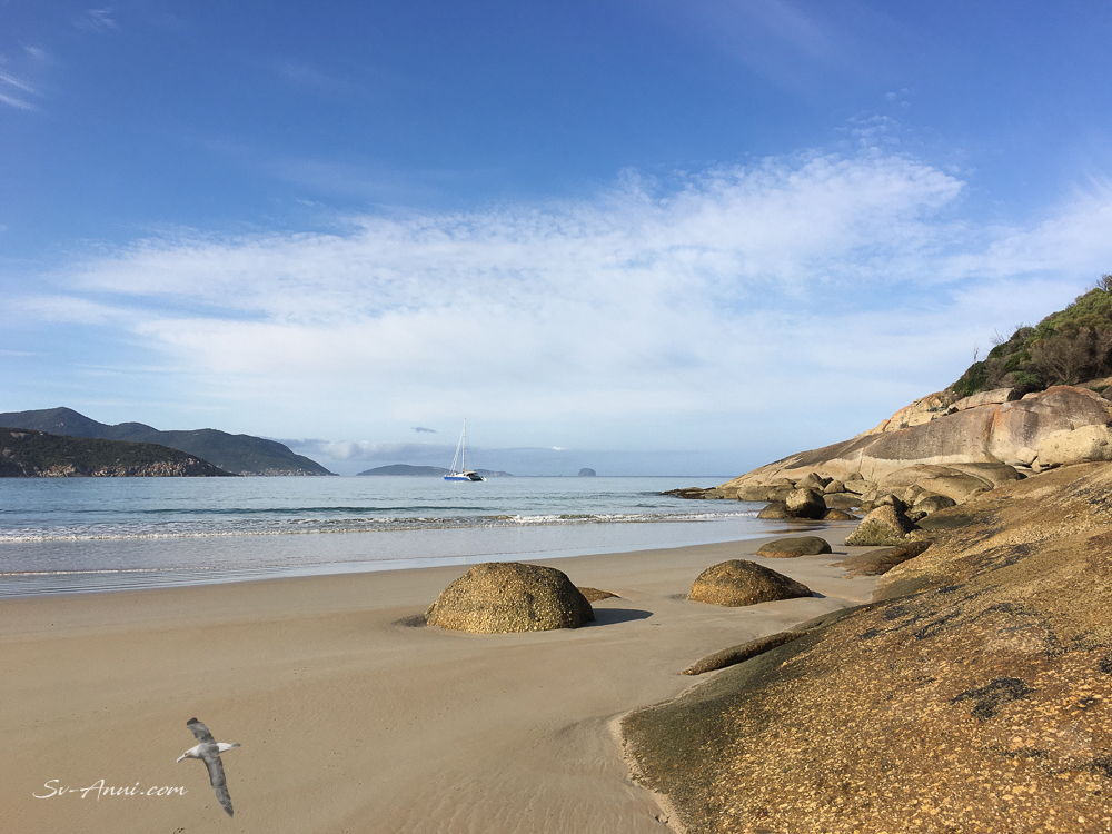 Sealers not an ideal anchorage, ended up 300m m off the beach to find 2′ of water at low tide! Also very exposed to easterlies.