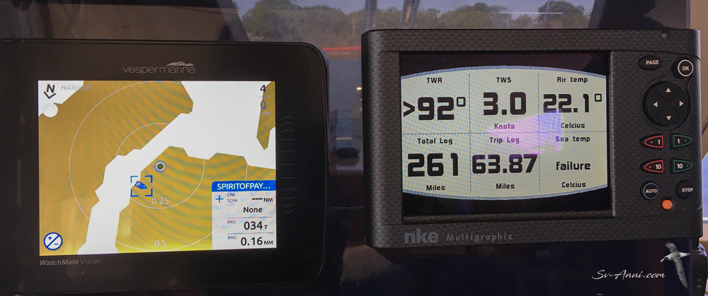 And then Wade wants to do something about the cockies which descend on all the yachts at dusk and dawn. These destructive devils have a particular liking for wind instruments, mast lights and furlers! Might have to come up with something better than hitting the rigging to stop them from landing and chewing on the gear! Here they are on another boat’s mast top.