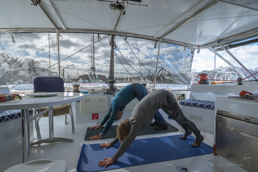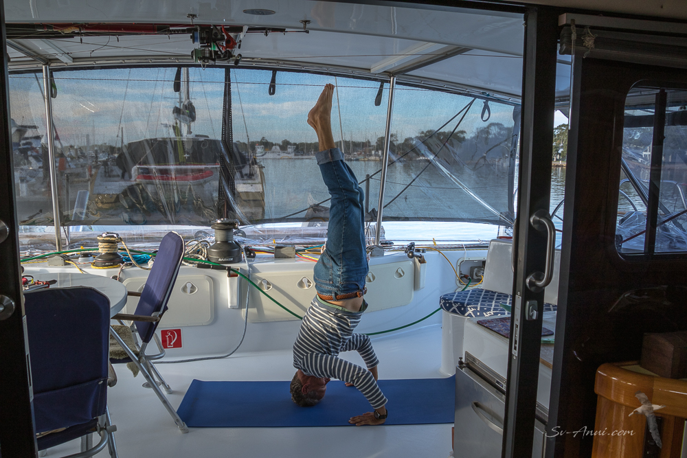 Looking after our body and health is something we do together. The cockpit has become our gym: daily yoga sessions to combat backache, interval training for strength and cardio a few times a week. For these we use two apps, Asana Rebel for yoga/meditation and Johnson & Johnson 7M Workout for the interval training sessions. We also go for a daily walk to get off the boat. We wish we could see more obvious physical results from our fitness regime but we are not youngsters anymore and it takes time. At least we feel better in ourselves and that’s a start!