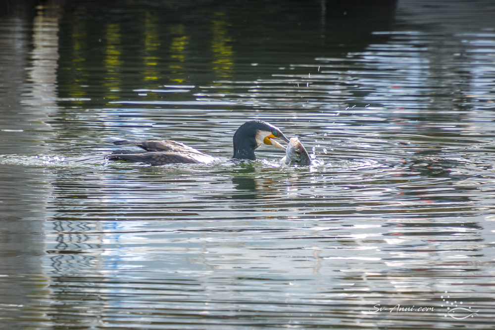 … and this Great Cormorant which for a while looked like it had bitten more than it could chew. It caught a large bream and struggled to gulp it down whole!