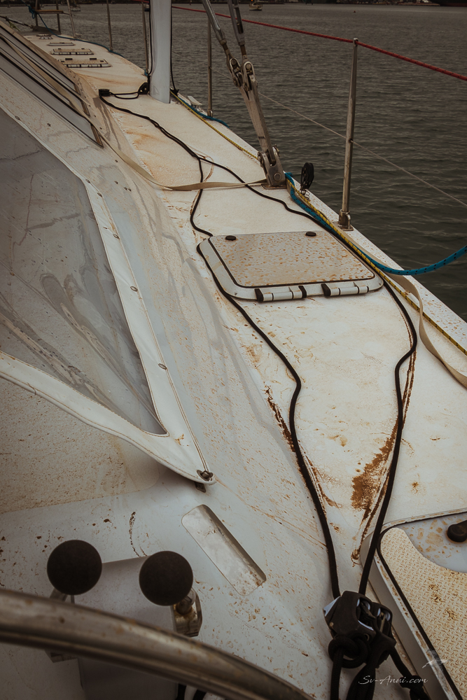 As for sails cleaning: a pressure washer, soak the sail for a while, then brush, detergent and get down on your hands and knees and scrub. We did not get it all the stains right off ours, but it’s better than it was.