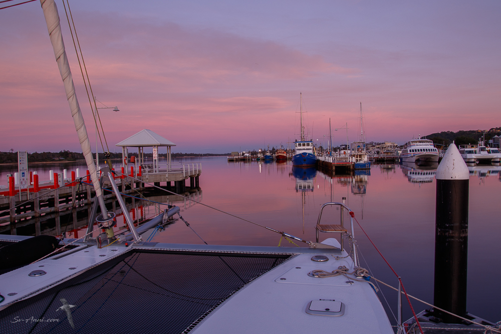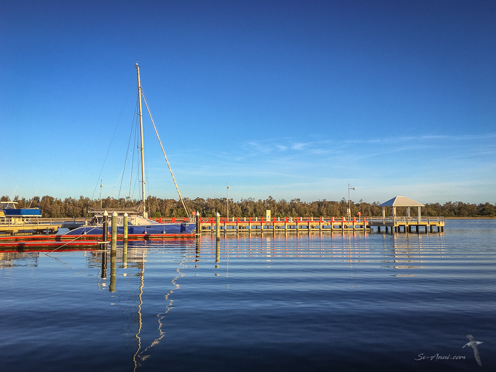 We motored to Lakes Entrance in totally calm conditions. It was a subdued passage, devoid of speed, wind, sails or excitement. Anui quietly glided on the mirror-like waterways.