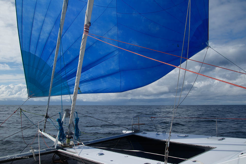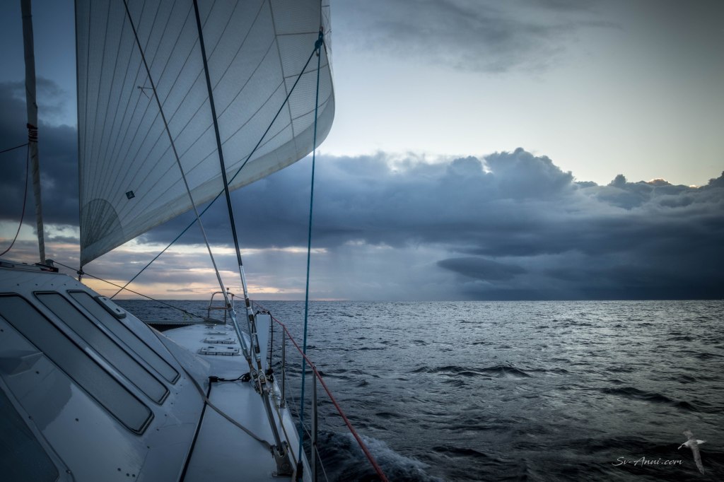 With the squalls came frequent wind changes and we kept rolling and unrolling the screecher, switching the engines on and off!