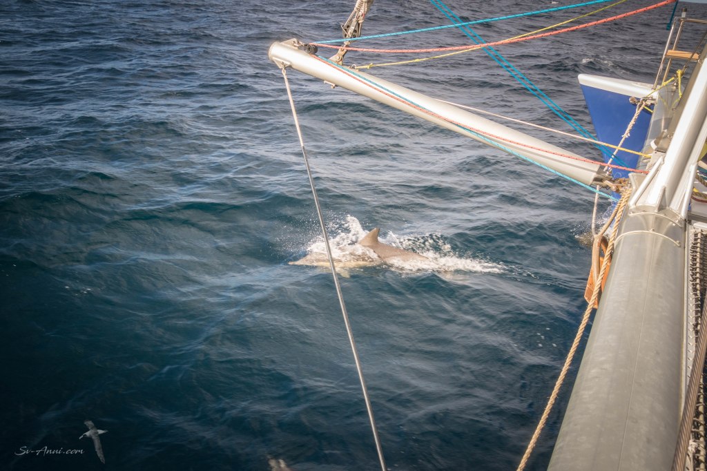 Our passage to Seal Rocks was an uneventful motor-sail with very little wind. We did not see many whales but a few dolphins escorted us for a short while though!