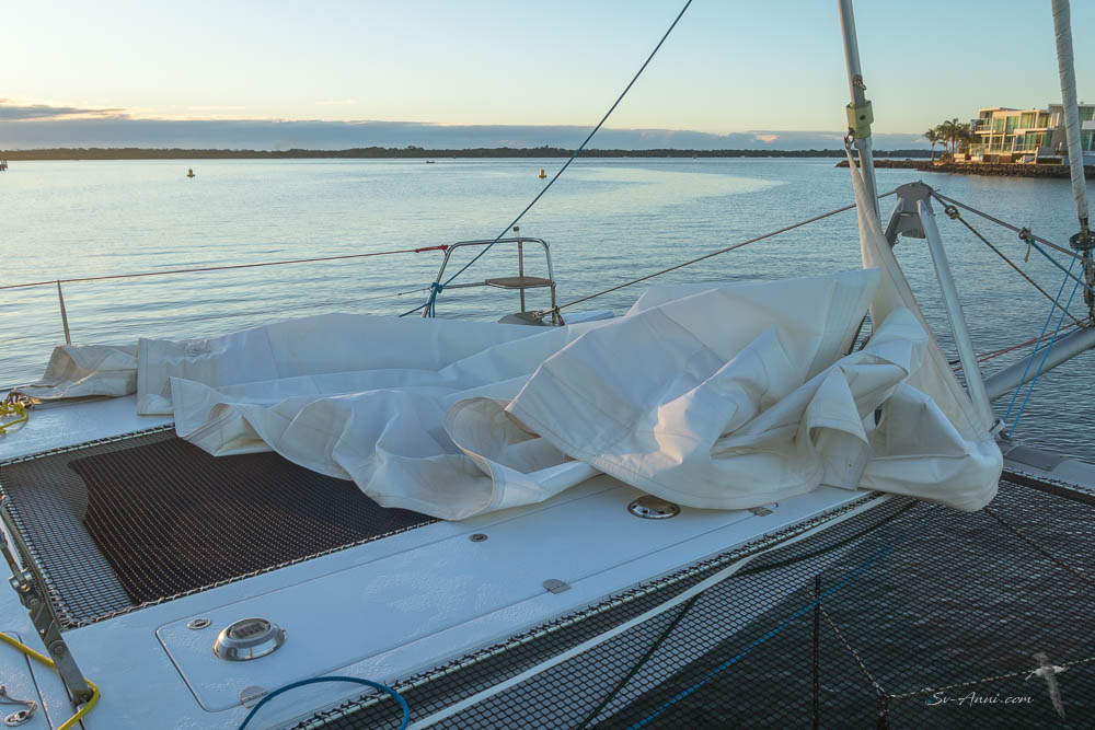 Take the latest hassle. We thought that the sea gods were smiling upon us… We had finished everything on Monday, after a quick dash to Boat Works in the dinghy to pick up our spares and new alternator bracket. We had said our goodbyes to our friends on Sengo. And we had even caught up with our friend John on his Outremer catamaran Alidade, which was an unexpected pleasure. But no, the gods were not smiling, they were irritating us! As we were lifting the anchor up to leave Paradise Point the anchor winch decided to stop hauling the last few meters of chain. We were off the bottom so motored away and went to anchor close to the Seaway, as we were intending to leave the Gold Coast the next day. We used a spare anchor and chain to do so and it took a few attempts for the anchor to stick. By the time we were settled it was dark and too late to investigate the offending winch. Next morning we did and found a main shaft drive key was broken. It had happened to us before so fortunately we knew the process and had a spare! But it took several hours to manage the fiddly disassembly and reassembly of the winch.